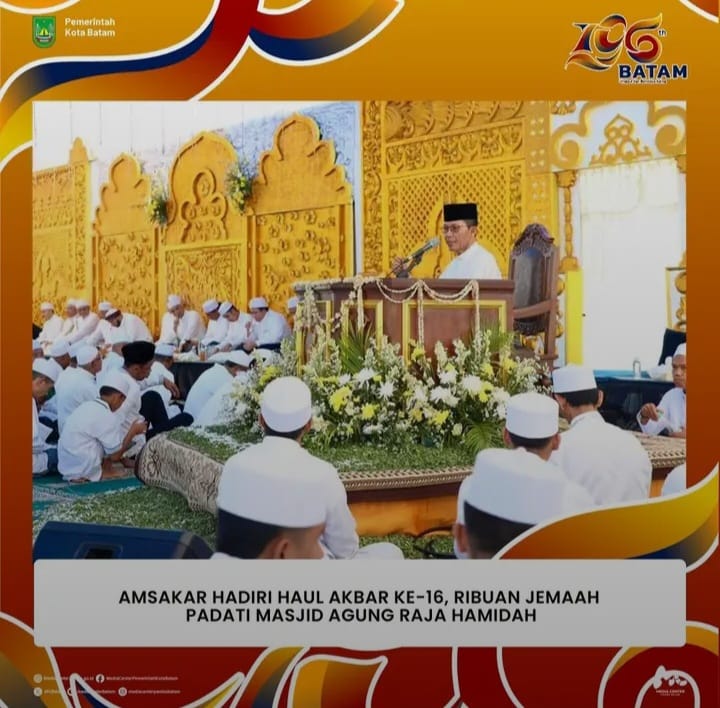 beritaSatuKepri Batam – Wali Kota Batam, Amsakar Achmad, menghadiri Haul Akbar Batam Ke-16 yang diselenggarakan Majelis Zikir Al-Khidmah di Masjid Agung Raja Hamidah, Batamcentre, Minggu (28/12/2025).