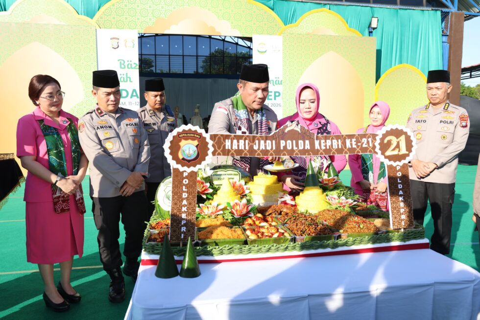 Batam – Dalam rangka memperingati Hari Ulang Tahun (HUT) ke-21 Polda Kepulauan Riau, Polda Kepri menggelar kegiatan Bazar Berkah Ramadhan 1447 H/2026 M yang berlangsung di Hanggar Cakra Buana Samapta Polda Kepri, Rabu (11/3/2026). Kegiatan ini menjadi momentum mempererat silaturahmi sekaligus berbagi kebahagiaan kepada keluarga besar Polda Kepri dan masyarakat di bulan suci Ramadhan.