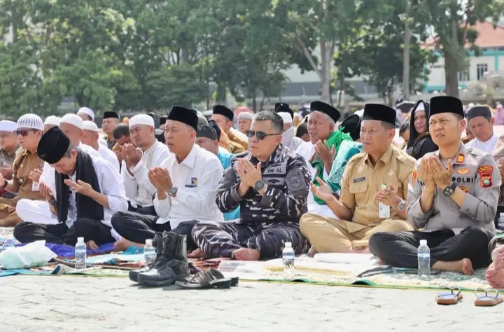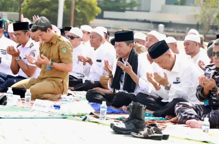 Batam – Di bawah terik matahari, Senin (30/3/2026) pagi, ratusan warga bersama aparatur Pemerintah Kota Batam memadati Dataran Engku Putri, Batamcentre, bersimpuh dalam Salat Istisqa, memanjatkan doa memohon turunnya hujan setelah beberapa pekan Batam dilanda cuaca panas yang mulai berdampak pada ketersediaan air bersih.