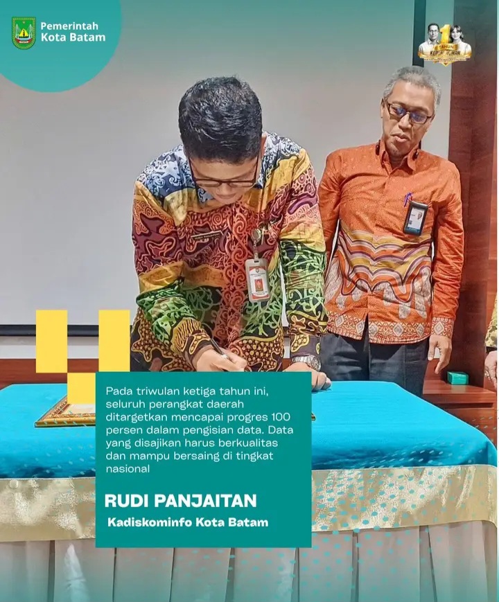 Kepala Dinas Komunikasi dan Informatika (Kominfo) Kota Batam, Rudi Panjaitan, mengatakan, ketersediaan data yang mutakhir dan layak publikasi menjadi kunci keberhasilan pembangunan daerah. Saat ini, Pemko Batam menargetkan peningkatan nilai Evaluasi Penyelenggaraan Statistik Sektoral (EPSS) dari kategori cukup menjadi baik.