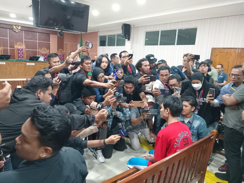 Sesaat vonis dibacakan pihak keluarga Fandi Ramadhan teriak histeris membuat ruangan dalam sidang riuh sejenak sembari mengucap terima kasih kepada sang penguasa karena Fandi lolos dari hukuman mati.