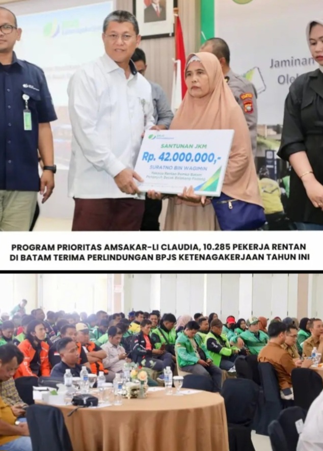 Batam – Sebanyak 10.285 pekerja rentan di Kota Batam menerima perlindungan jaminan sosial ketenagakerjaan melalui program BPJS Ketenagakerjaan yang dianggarkan Pemerintah Kota Batam. Program ini menjadi salah satu prioritas Wali Kota Batam, Amsakar Achmad, bersama Wakil Wali Kota Batam, Li Claudia Chandra.