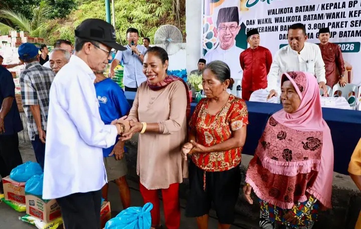 Batam – Wali Kota Batam, Amsakar Achmad, menyalurkan 3.800 paket bahan pokok dari Utama Group Batam kepada masyarakat dalam kegiatan bakti sosial yang digelar di Kawasan Indah Industrial Park, Kampung Pelita, Jumat (6/3/2026). Amsakar menilai, kepedulian sosial dari dunia usaha dan masyarakat menjadi langkah nyata untuk membantu menjaga stabilitas harga serta menekan inflasi menjelang Hari Raya Idulfitri.