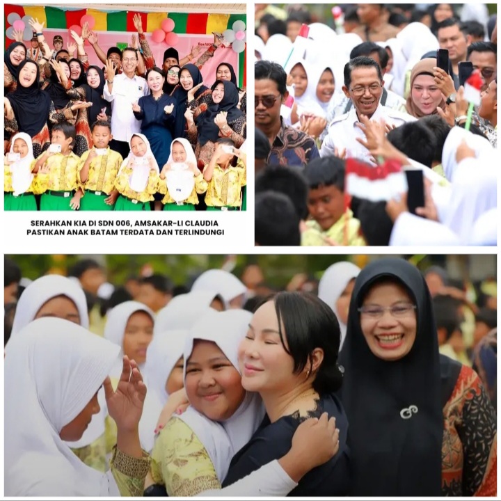 Diskominfo Batam – Suasana ceria menyambut kehadiran Wali Kota Batam, Amsakar Achmad, dan Wakil Wali Kota, Li Claudia Chandra, di SDN 006 Batam Kota, Kamis (12/2/2026), saat keduanya membagikan Kartu Identitas Anak (KIA). Penyerahan tersebut menjadi bagian dari komitmen pemerintah daerah dalam memastikan setiap anak memiliki identitas resmi sebagai bentuk jaminan hak dan perlindungan negara.
