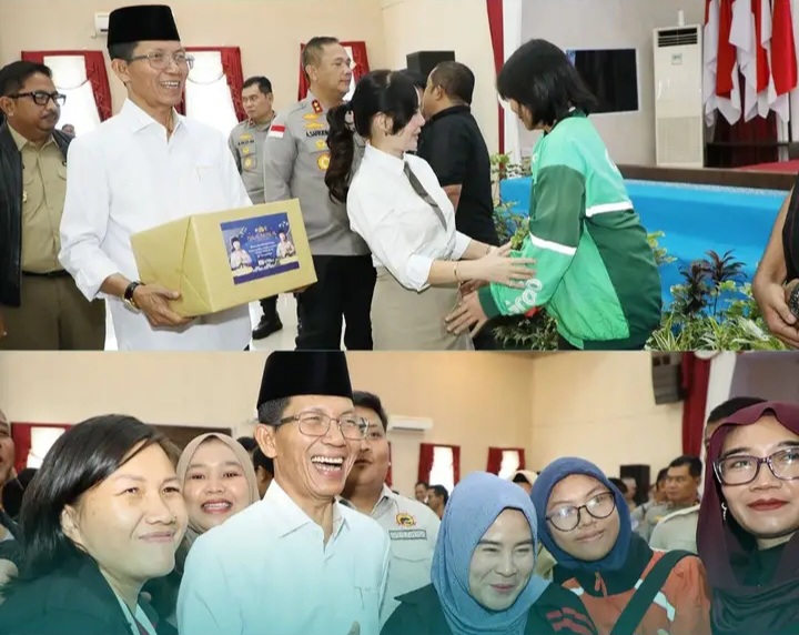 Wali Kota Batam, Amsakar Achmad, bersama Wakil Wali Kota Batam, Li Claudia Chandra, menghadiri halalbihalal Idulfitri 1447 Hijriah/2026 Masehi yang diselenggarakan Polda Kepulauan Riau (Kepri) bersama komunitas pengemudi online serta serikat buruh se-Kepri.